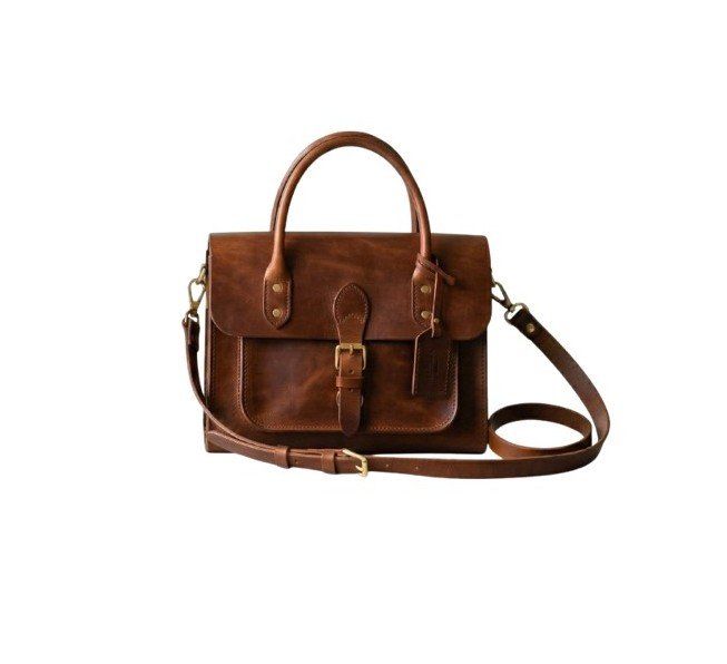 Produk ini menampilkan tas tangan berbahan kulit asli dengan tekstur permukaan yang halus serta detail jahitan rapi yang menonjolkan kualitas kerajinan tangan premium. Desain satchel tradisional yang dilengkapi dengan tali selempang dan aksen gesper kuningan ini menciptakan kesan profesional yang elegan sekaligus fungsional untuk penggunaan jangka panjang.###
